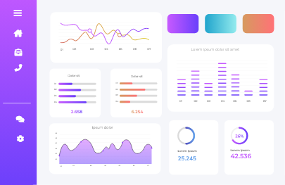 Dashboards provide a visual representation of Customer detail, Product, Price, cash flow and inventory with payment gateway.